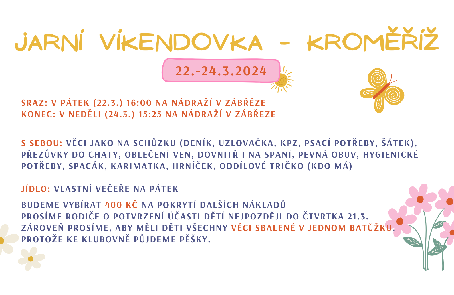 prosíme, aby byly děti sbaleny do jednoho batohu. Ke klubovně půjdeme od